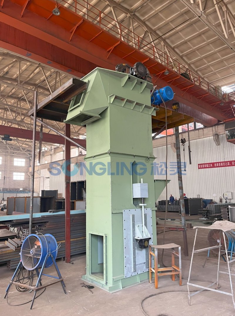 ZBT系列板链斗式提升机由底部机壳、张紧装置、中间壳体、头部机壳、驱动机构、拖动机构、链条及料斗等组成。