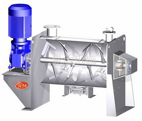 卧式螺带混合机革命性地改变了传统工艺的粉-粉、粉-液、固体物料、颗粒状物料的混合状况,使粉一粉、粉一液、固体物料、颗粒状物料的混合向高速、高效、易操作清洗方便,无污染方面发展,标志着现代工艺的显著进步