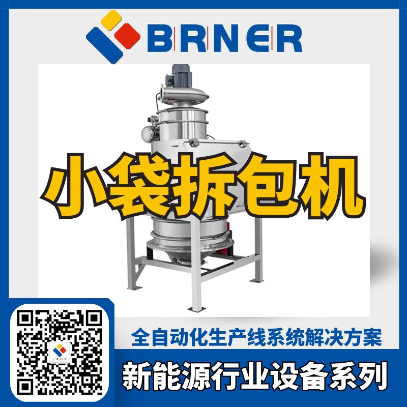 小袋拆包机是用于人工倾倒小袋装粉末或颗粒状物料至下游料斗内的手动设备,该设备内部安装过滤器清洁装置及排风扇,用于将倾倒过程中产生的粉尘滤除,并将洁净尾气排入大气,使人工能在清洁的环境中轻松地工作。