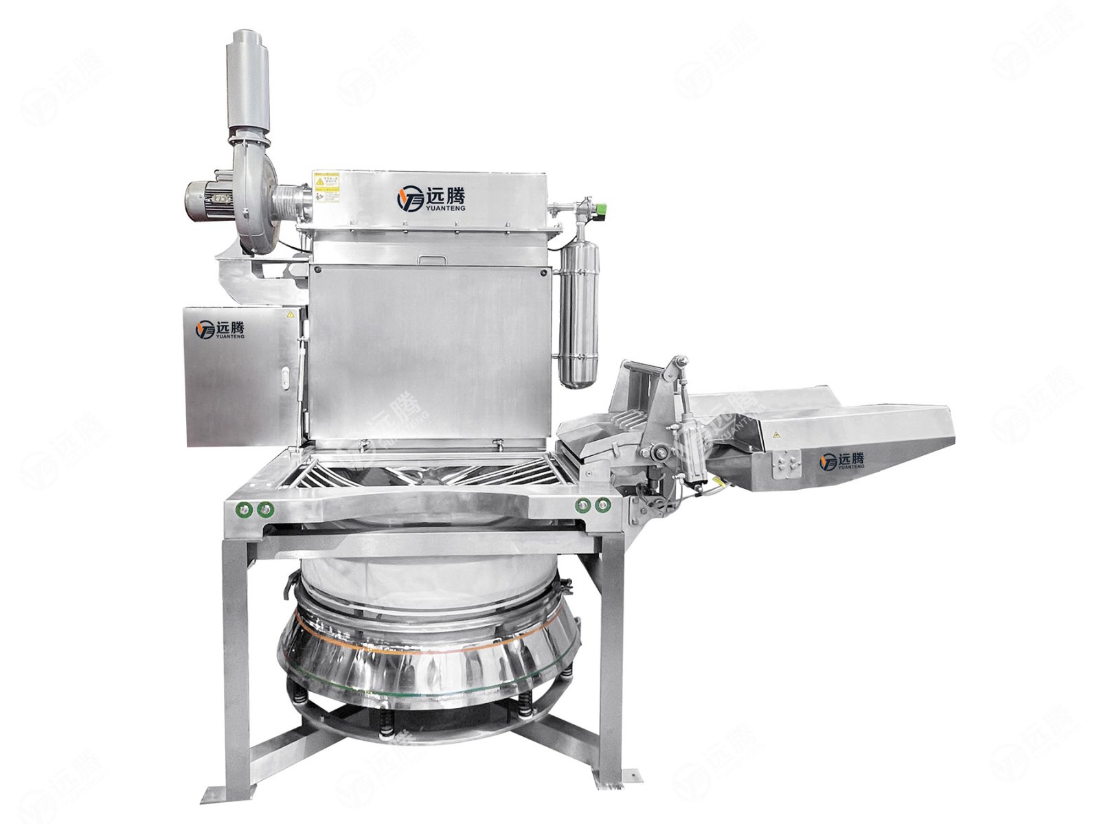 2.配合皮带输送机上料,省去人员搬运的沉重负担,避免重复劳动,机械化自动割袋,两个方向的刀片保证了割袋的稳定性,破包的物料完成自动投料筛分,操作人员只需要对设备进行规范操作就可以完成以往的体力劳动,转型做机器设备的管理者。