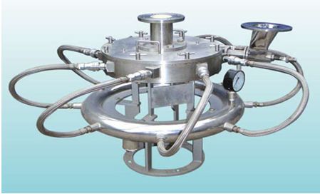 圆盘式气流粉碎机与旋风分离器、除尘器、引风机组成一整套粉碎系统。压缩空气经过滤干燥后,通过拉瓦尔喷嘴高速喷射入粉碎腔,在多股高压气流的交汇点处物料被反复碰撞、磨擦、剪切而粉碎,粉碎后的物料在风机抽力作用下随上升气流运动至分级区,在高速旋转的分级涡轮产生的强大离心力作用下,使粗细物料分离,符合粒度要求的细颗粒通过分级轮进入旋风分离器和除尘器收集,粗颗粒下降至粉碎区继续粉碎。