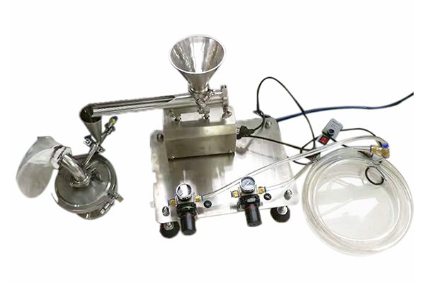 强迪QDB-100型实验室用气流粉碎机兼顾了制药企业实验室微量实验和生产部门少批量的需求,采用桌面型设计,可以实现50~300g的批量式样的目的,另外改变收集装置设计,可实现与300~1000g/批次,3~5公斤/批次的工艺切换,解决了实验和微量生产使用不同机器型号的矛盾。