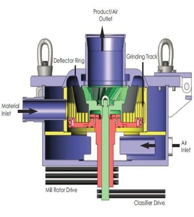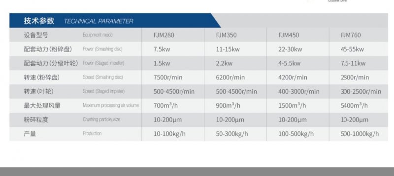 FJM空气分级磨是一种应用广泛的粉碎机,统称为空气分级磨,根据分级形式的不同有很多变形设计,但其磨碎都式原来都是一致的,通过高速粉碎盘带劢的粉碎锤头劢物料在不粉碎齿圈之间形成的粉碎区内受到、冲击、碰撞、摩擦、剪切等多种粉碎力的作用,使物料粉碎,达到细度的产品通过分级区分级转子的作用,进入收集器收集,粗粉落入粉碎区继续粉碎,完成一次粉碎分级作业循环。