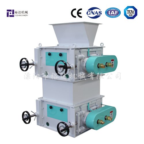 1、该机采用对辊差速原理,对进机物料进行挤压、剪切,使大颗粒物料破碎成不规则小颗粒物料。