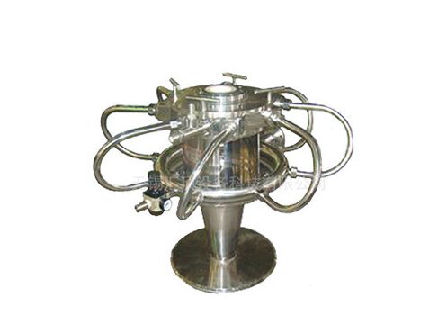 流粉碎机与旋风分离器、除尘器、引风机组成一整套粉碎系统。压缩空气经过滤干燥后,通过拉瓦尔喷嘴高速喷射入粉碎腔,在多股高压气流的交汇点处物料被反复碰撞、磨擦、剪切而粉碎,粉碎后的物料在风机抽力作用下随上升气流运动至分级区,在高速旋转的分级涡轮产生的强大离心力作用下,使粗细物料分离,符合粒度要求的细颗粒通过分级轮进入旋风分离器和除尘器收集,粗颗粒下降至粉碎区继续粉