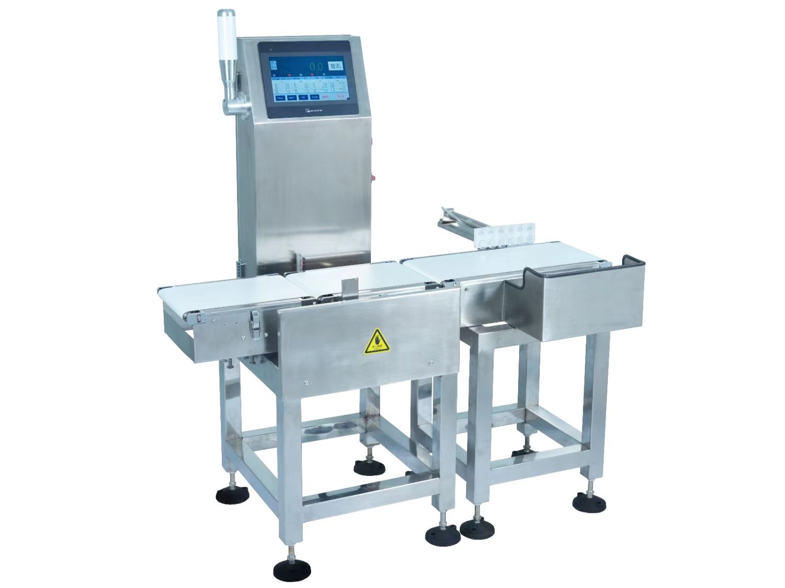 6.高效率剔除及报警灯:不足重量报警显示黄灯;超重重量报警显示红灯;合格重量自动显示绿灯