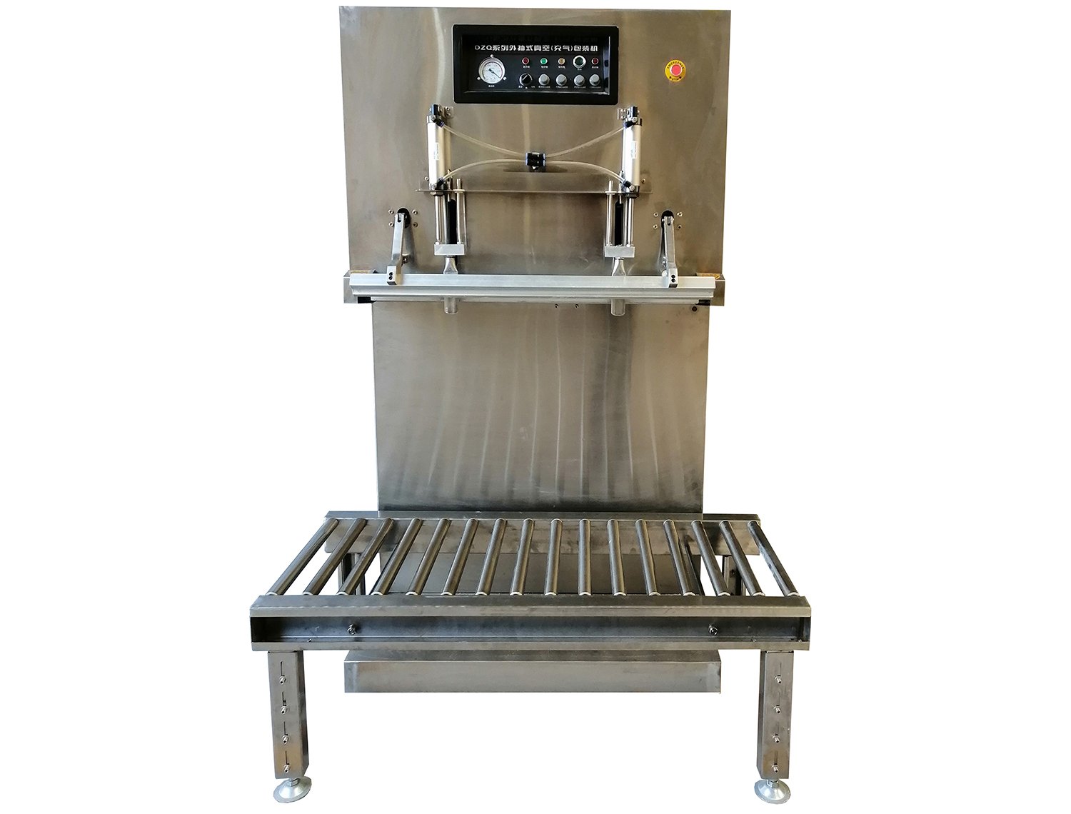 该机采用无真空室,直接对包装袋抽真空、充氮气、封口一次完成,速度快,调整方便,并可与5~50kg包装生产线配套,也可作为单一大袋立式封口使用。