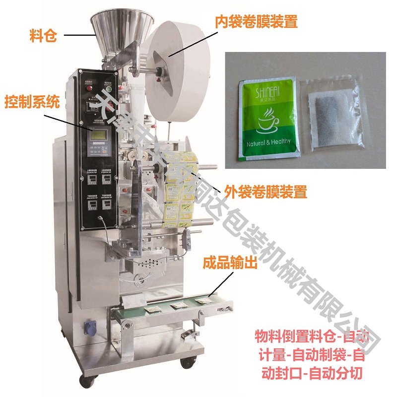 DXDK-100NWA内外袋袋泡茶包装机适用于茶叶、中草药粉碎颗粒、药茶、保健茶、袋泡茶等物料的内外袋一次性包装。