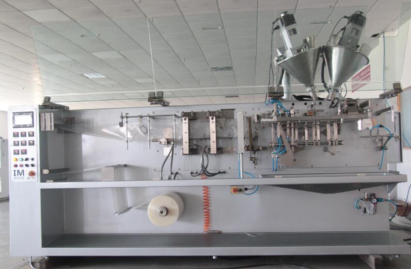 该设备是小型水平式卷膜制袋一体包装设备。可选择单列或双列工作方式。选择双列制袋时,每个机器运行周期可以同时生成两个小袋子。速度**可达到180袋/分钟。