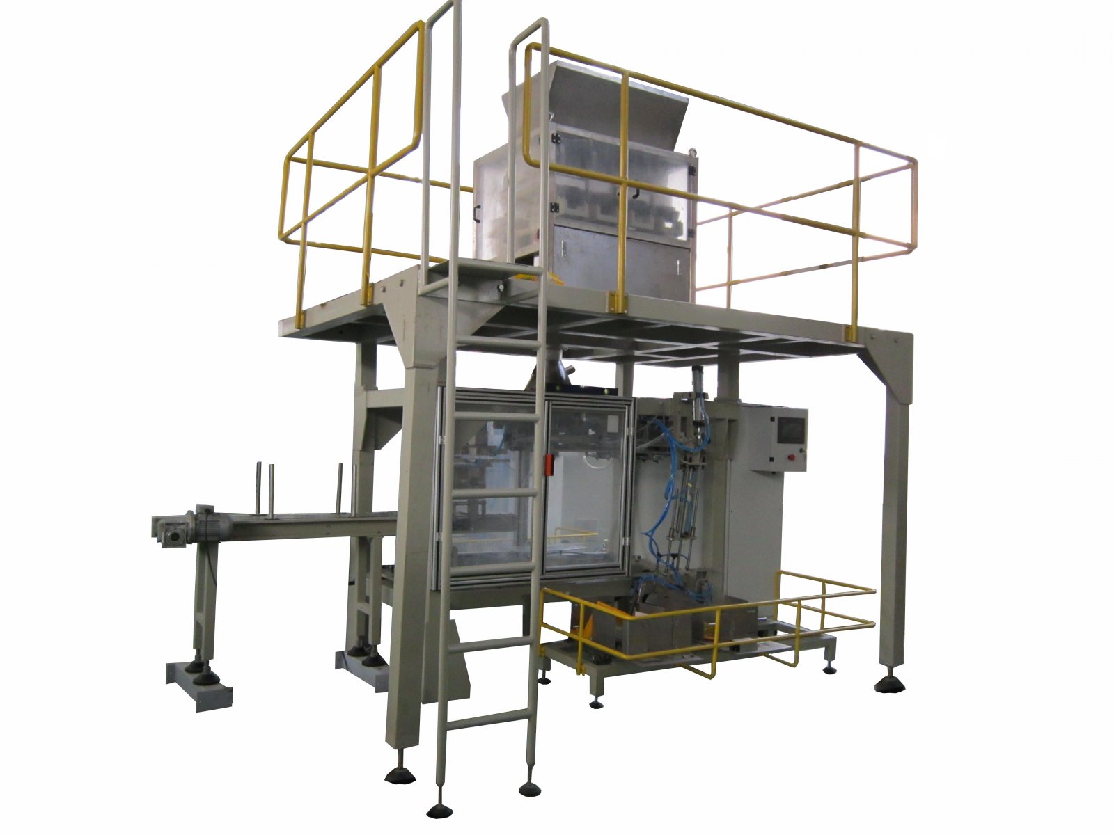 我公司针对化工、饲料、粮食、种子等行业的大袋颗粒物料包装而研制的新型包装机组。该机组具有自动称量、自动上袋、自动填充、自动送包、自动封口等功能。可与各类颗粒、片状等物料设备联动工作,实现大规格包装无人化生产作业。