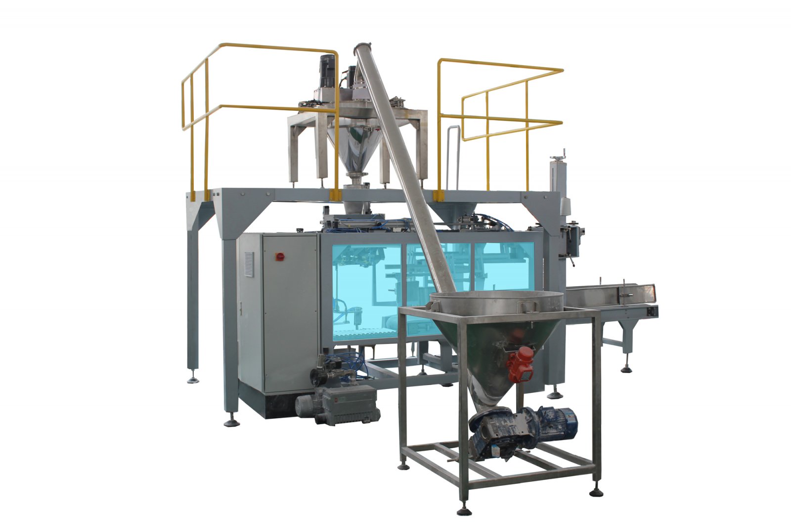 我公司针对农化、食品等行业粉状物料包装而研制的新型包装机组。该机组具有自动供袋、上袋、填充、送包、封口等功能。可与各类粉体物料设备联动工作,实现大规格包装无人化生产作业。