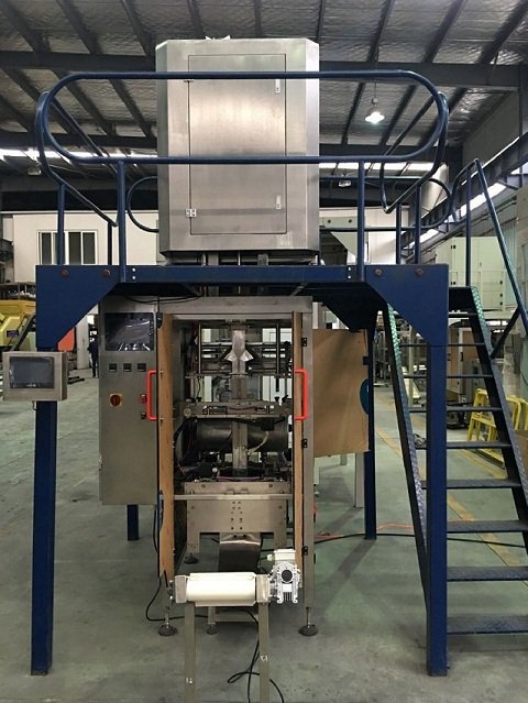 产品说明:广泛适用于大米、绿豆、红豆、黄豆、小黄米等杂粮产品真空六面体包装。该机器由全自动立式真空包装机、自动称量机、斗士提升机组以及成品输送机等组成。