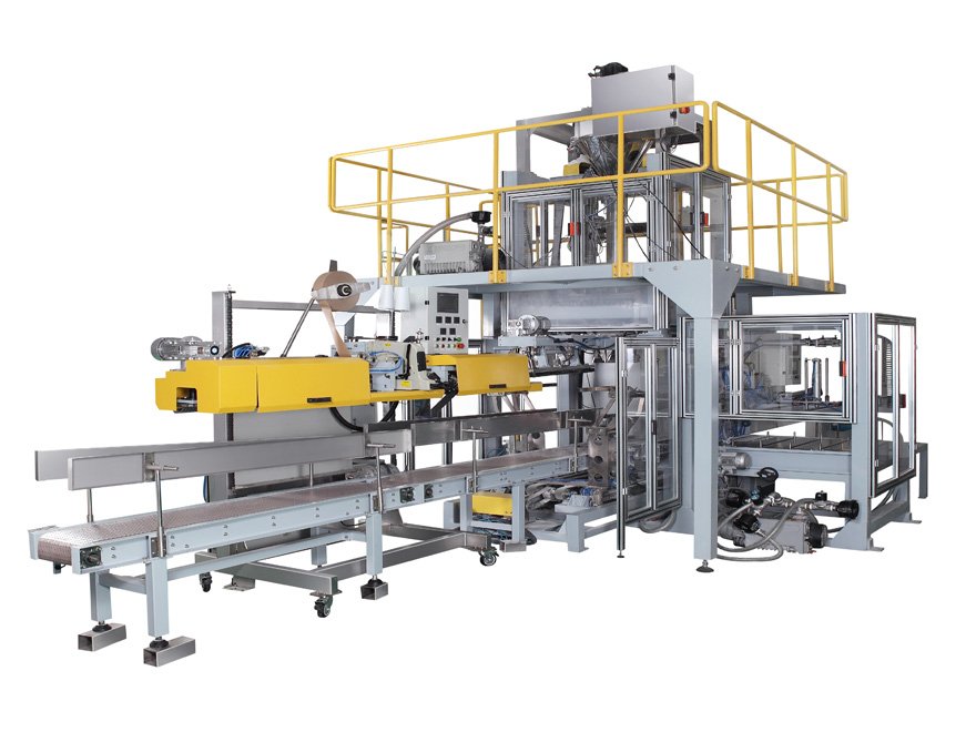 重袋全自动包装机组是采用给袋式包装,针对化工、农业、食品、粮食等行业小颗粒、粉状物料而研制的新款包装机组。该机组具有自动供袋、上袋、填充、封口、送包等功能,同时可以与各类物料设备联动工作,实现大规格包装无人化生产作业。