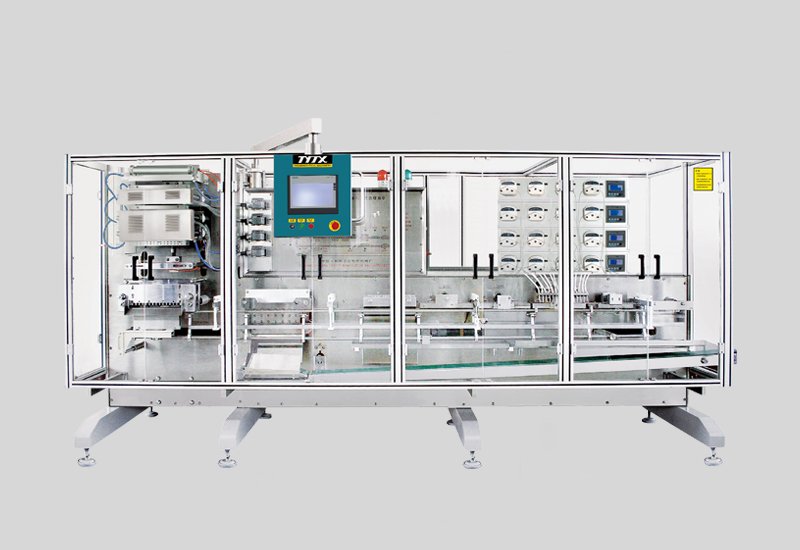 此联动线是对单位剂量的液态或半流体液态的物料进行灌封包装及装盒的生产线,主要用于灌封包装口服液药品、保健品、食品、农药和其它工业领域的类似产品。主机采用全称操控彩色人机界面及单体可控回吸不滴液的灌装泵。表面采用不锈钢材质,符合GMP标准。