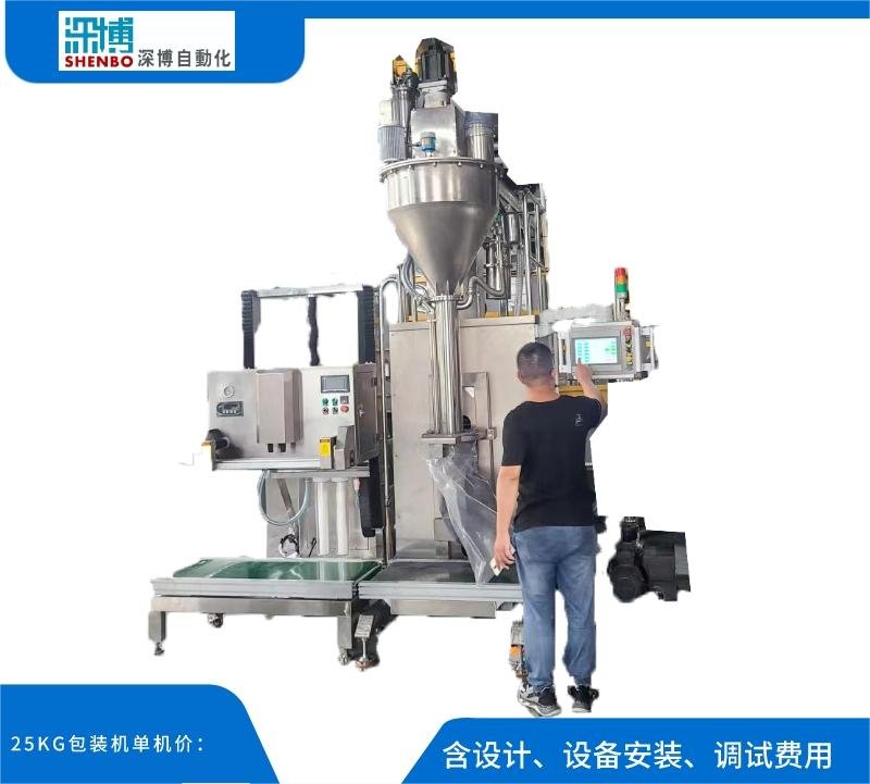 给料装置采用螺旋加料方式,螺旋选用垂直螺杆结构,螺杆下端悬空有支撑轴,下料过程有粉尘回收功能;可减少包装粉尘;