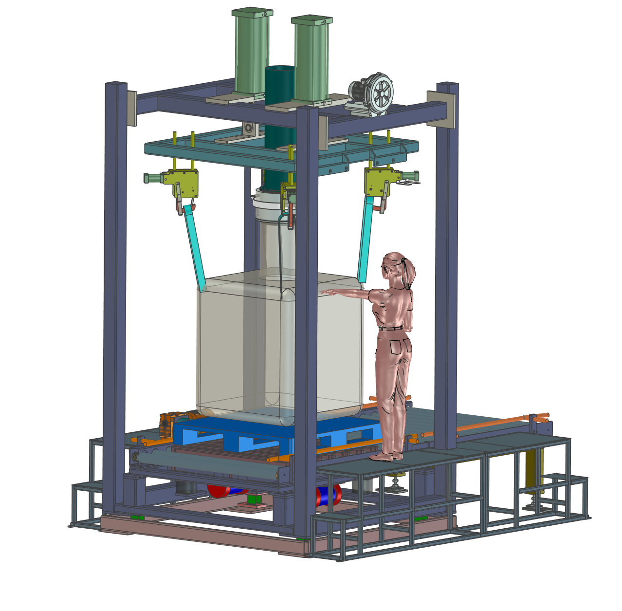 吨袋包装机主要针对于吨包的快速充填,产能高、精度要求低、无需脱气等物料。结构简单,占用空间小,操作方便等特点。可根据实际情况与其它设备组成简单吨包生产线。