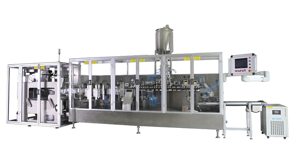 异形袋小容量水平自立袋包装设备是针对异形袋而设计的专用设备,在行业中备受推崇。特别适用于饮料溶液、酵素、胶原蛋白的高速包装。可根据要求安装多种灌装设备和膜切模具,以满足不同客户独特的生产需求。