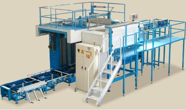 托盘仓储存和自动分配空托盘,每当一次码垛操作完成后,满载垛盘的当前位置会被托盘仓中的下一个空托盘取代。空托盘从托盘仓传送到码垛机的适当位置上的所有操作都是自动完成的。