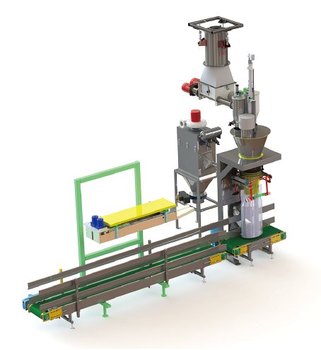 由补料阀、减法料仓、配料螺旋、排气系统、脉冲除尘器、振袋机构、缝包系统、热封口机,电控系统等组成。