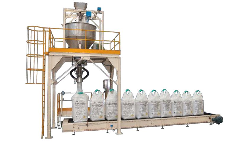 该设备可附加的选项有托盘排出辊道和空托盘自动仓库。生产速度可达每小时60个大袋。