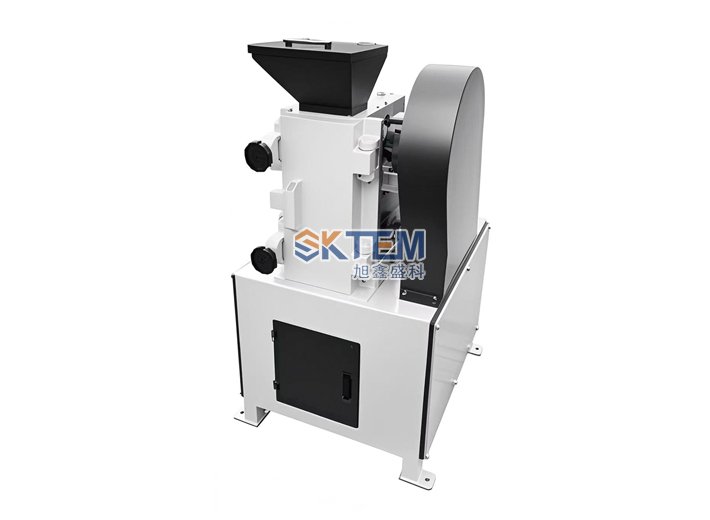 制备的样品进入两个颚板之间,颚板对样品进行挤压破碎,破碎后的样品在重力作用下,沿着楔形腔体落入收集箱,样品出样尺寸取决于调节的两个颚板之间的间隙,可调节的颚板间隙保证了样品的粉碎效果。
