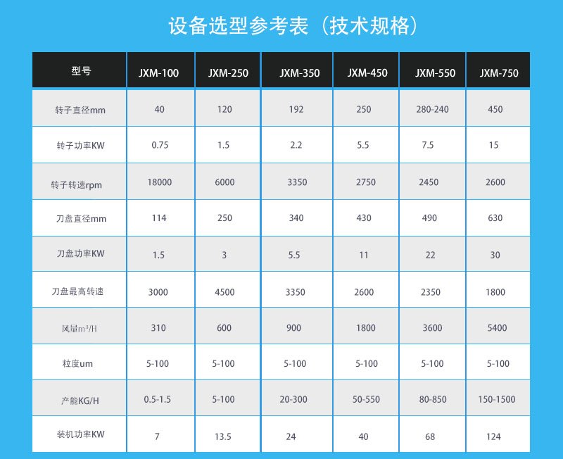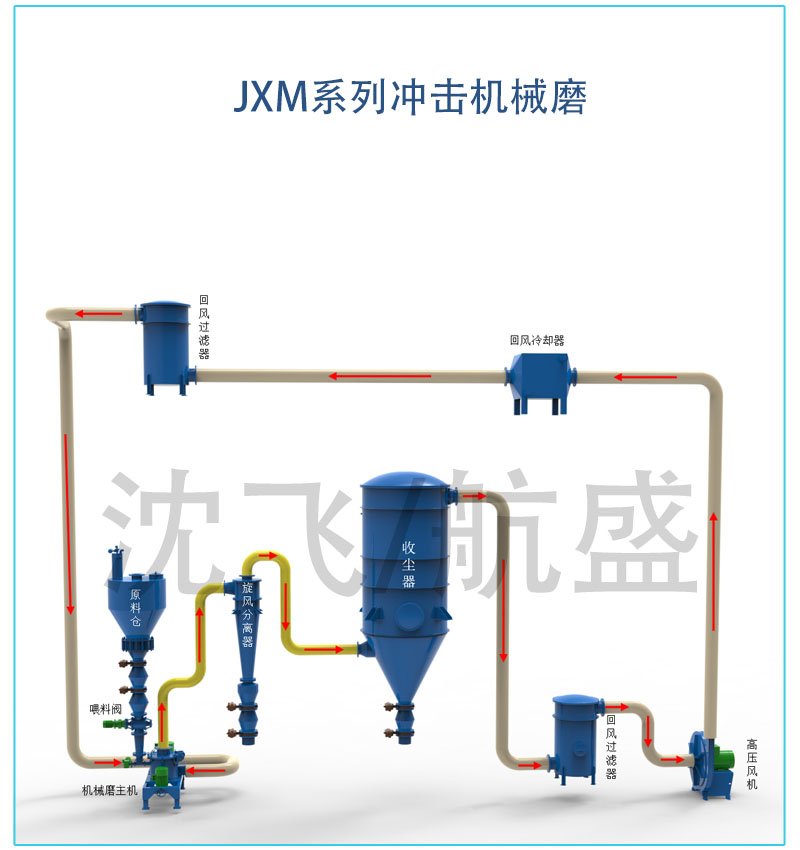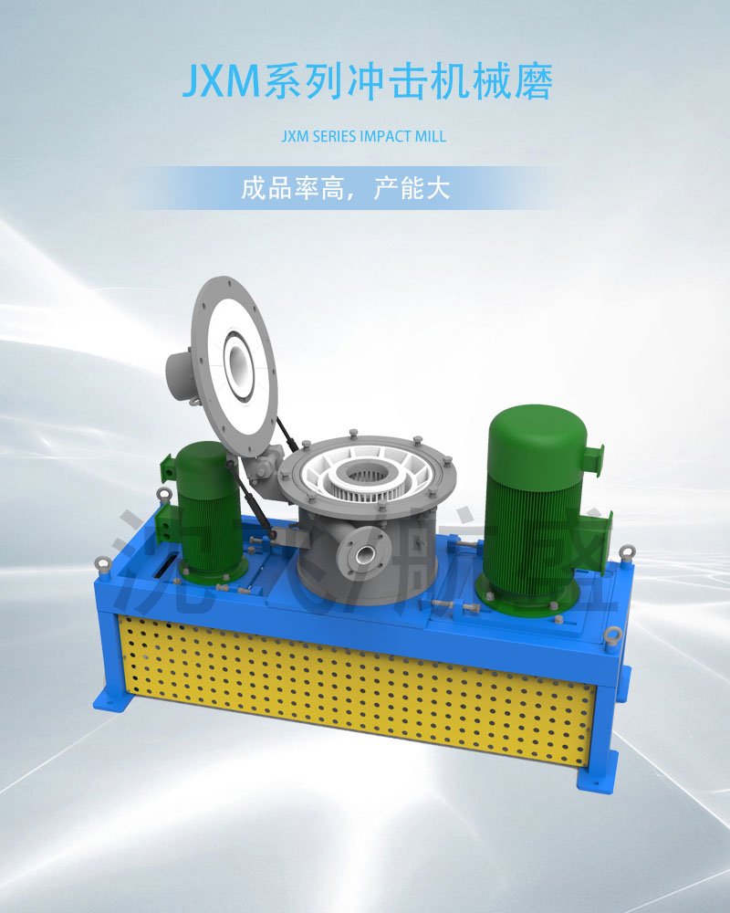 我公司研制的JXM系列冲击机械磨是将机械研磨与分级融为一体的粉碎系统。设备具有研磨、冲击、剪切和打散、整形等功能。