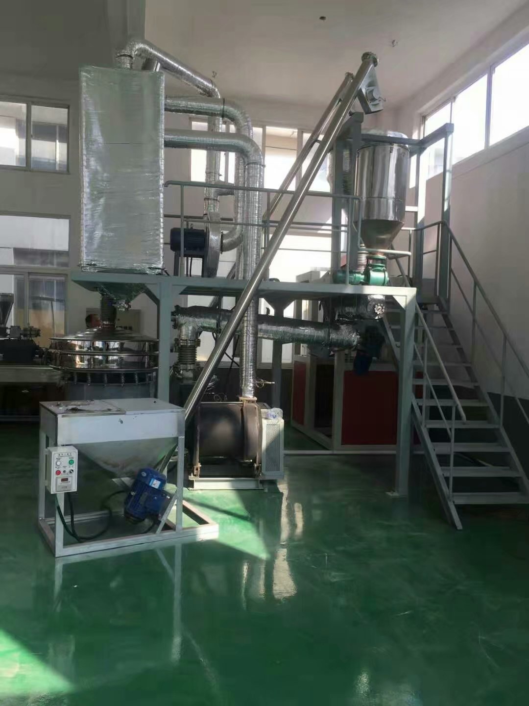 该深冷式粉碎机系统使用于在常温下无法粉碎的各种物料,广泛应用于各种化工、石化、机械、船舶、汽车行业、电子行业、服装、涂料、印刷、工程塑料、橡胶、鞋材、聚氟乙烯、热塑性物料、热熔胶、聚乙烯醇、尼龙、聚酯、聚丙烯、聚乙烯、热塑性弹性体LLDPE、LDPE、TPU、TPEE,尼龙类PA11、PA1010、PA12、PA6、PA66、PA610共聚尼龙,EVA、PC、PS、PA等等物料的粉碎。