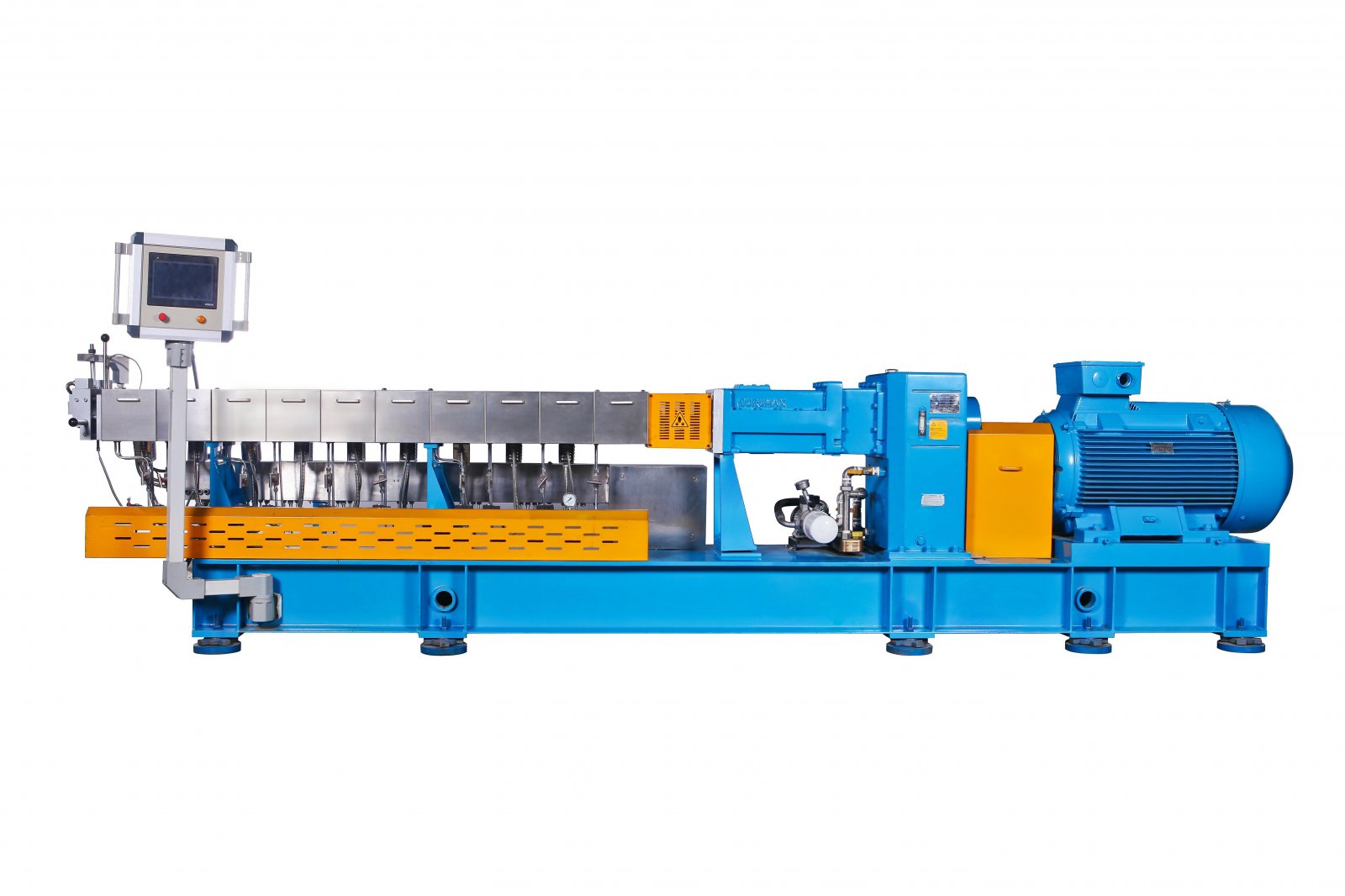 高扭矩双螺杆挤出机组是借鉴国内的制造技术,对现有产品进行技术提升,推出新一代高转速、高扭矩、大功率的双螺杆挤出机。