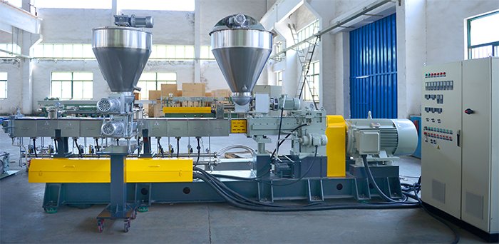 ·SHJ系列双螺杆挤出机由驱动部分和加工部分组成。 ·驱动部分包括传动箱与电机。根据机型特点,交流电机和直流电机可供选择。 传动箱采用我公司研发的高扭矩,高转速,高产量型的新型传动箱系统,这种新型传动箱自投向市场以来,质量稳定、性能优良。 ·加工部分由两根同向旋转的螺杆芯轴、螺杆元件、筒体组成。筒体有闭合筒体、喂料筒体、排气筒体。螺杆长径比可根据加工工艺调整,我公司根据不同物料的特性和加工工艺已经研制出各种螺杆元件,随加工性能组合,可实现物料的输送,混合,混炼,剪切,脱挥,反应,压缩等各种功能。我们的喂料装置除了正常的主喂料、侧喂料或液体喂料以外,还有立式强制喂料和锥形喂料装置等,另外也可采用失重式多路喂料计量系统。