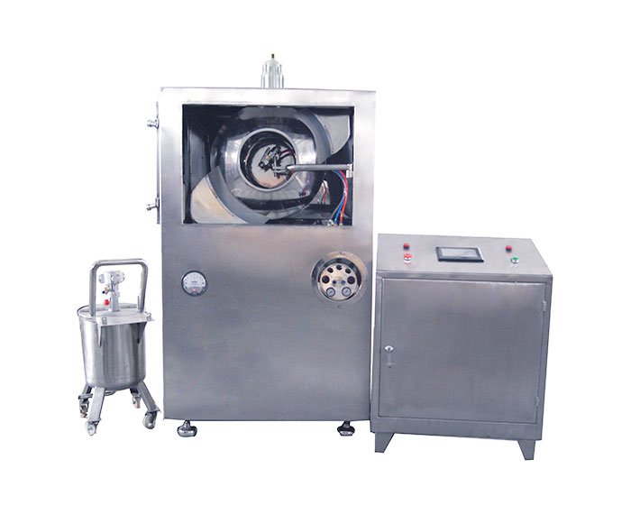 1、主机是包衣机的主要工作间,内有包衣滚筒,滚筒由不锈钢筛孔板组成,门上装有活动杆,杆端装有可调介质喷枪(10型单只喷枪、80型两只喷枪、150型三只喷枪),喷枪均选用日本进口的喷枪,该枪具有自动顶针、扇形面宽、角度可调、不沾料之优点。滚筒的主传动系统为变频器控制的变频调速机,滚筒的两边设热风进风风道与排风风道,风道均安装初、中、过滤器,确保进入工作间的热风级别达到10万级以上。