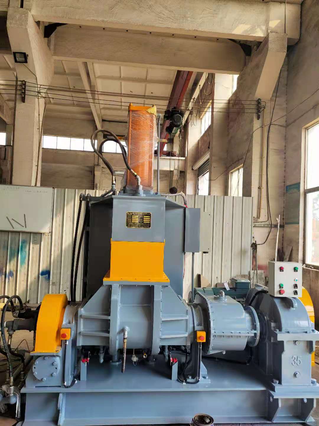 12、密炼机齿轮箱之齿轮系采高级铬猛、特殊钢制成,经由西德进口高级机组精密加工完成,准确度高,组装质量优良,不易磨损断裂,传动效率,并且低噪音,故障率极低,省电。