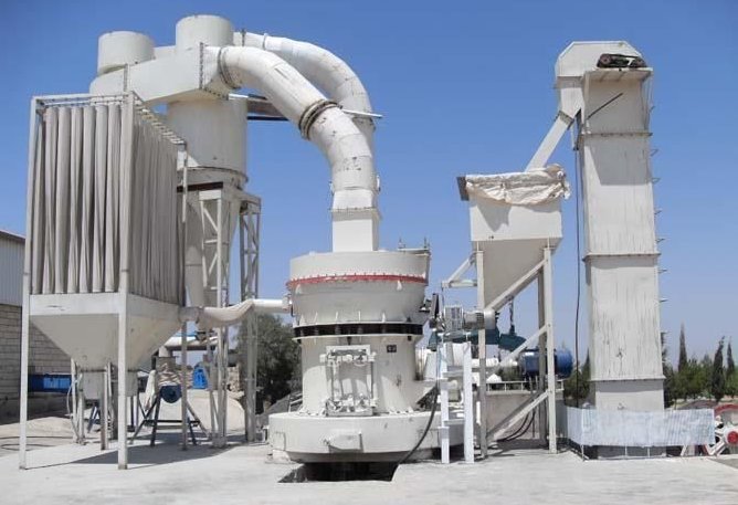 主要由电机、减速机、磨辊装置、加压装置、气体分离分级装置、机体和液压装置等组成。系统包含提升机(或其他输送设备),进料锁风装置,立式磨,旋风收尘器,流量阀,布袋收尘器,螺旋输送机(或刚性叶轮等其他卸料设备),风机,控制系统等。