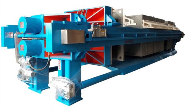 隔膜压滤机是由隔膜滤板(隔膜滤板是由两片聚丙烯膜片与高强度聚丙烯芯板热融合而成)和厢式滤板排列组成滤室,在输料泵的压力作用下将料将输入滤室,通过滤布将料浆中的固体和液体分离,当料浆中的固体形成滤饼后,再想隔膜腔注入适当的压力空气或水,对滤室内的固体充分压榨,降低含水率。尤其是对于粘性物料的过滤及对含水率要求高的用户,此机更有其独特的特性。采用低启动变频减速机自动拉板,PLC程序控制、省时省力、操作简单、性能稳定。