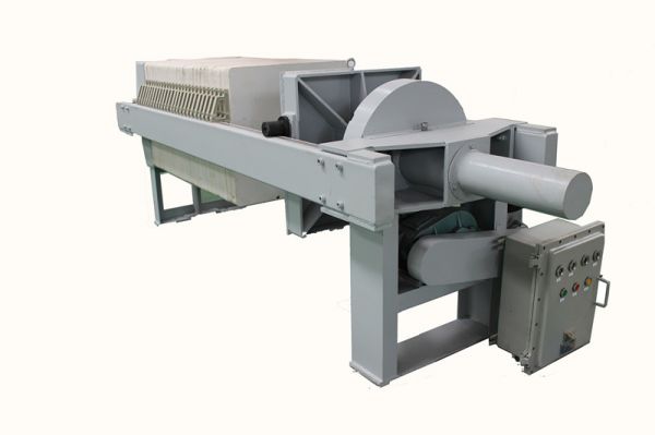 机械压紧压滤机,压紧时是由电动机带动减速机,经传动部件推动压紧板压紧滤板。压紧螺杆和固定螺母设计有可靠的自锁螺旋角,能保证压紧时的可靠性和稳定性。用电机综合保护器实现自动控制。可对电机实现过热和过载保护。