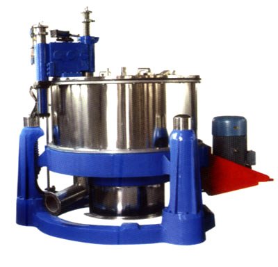 SGZ型离心机为三足式刮刀下部卸料、间歇操作、程序控制的过滤式自动离心机。可按使用要求设定程序,由液压、电气控制系统自动完成进料、分离、洗涤、脱水、卸料等工序,可实现远、近距离操作。该机采用窄刮刀低速卸料,因此除广泛用于含粒度0.05-0.15毫米固相颗粒的悬浮液分离外,特别适宜热敏感性强、不允许晶粒破碎、操作人员不宜接近的物料的分离。该相具有自动化程序高、处理量大、分离效果好、运转稳定、操作方便等优点。 调速电动机带动转鼓中速旋转,进料代开启将物料由进料管加入转鼓 ,经布料盘均匀洒布到鼓壁,进料达到预定窖后停止进料,转鼓各至高速旋转,在离心力作用下,液相穿过滤布和鼓壁滤孔排出,固相截留在转鼓内,转鼓降至低速后,刮刀旋转往复动作,将固相从鼓壁刮下由离心机下部排出。 |