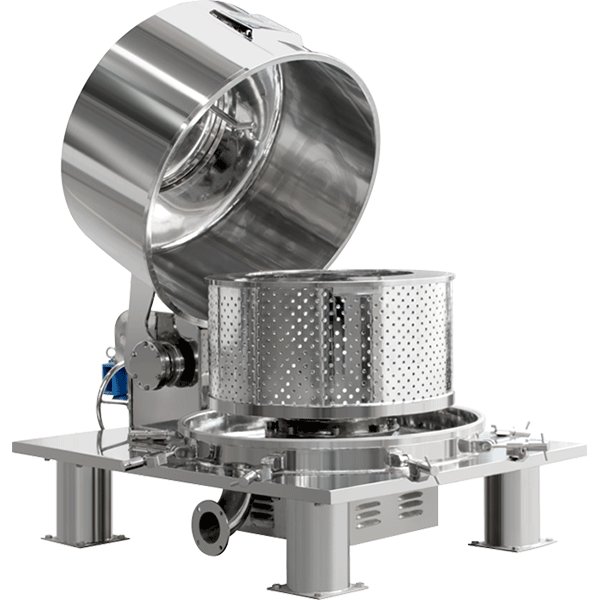 PQSB系列离心机是一种平板式洁净型、间歇操作的过滤设备。物料由密闭机壳的进料管加入到转鼓,在离心力的作用下,液相穿过过滤介质排出机外,固相物被截留在转鼓内,停机后打开机盖从上部卸料。设备可通过人工、液压驱动、气压驱动等方式整体开盖超过90度,从而使整个转鼓部件露出,方便卸料、清洗、更换滤袋等操作。整机采用符合GMP、FDA认证标准制作,整体抛光无死角。PSFQ机型采用电机直联驱动,避免三角带、机械制动等带来的粉尘,特别适用于易燃易爆、有毒场合。