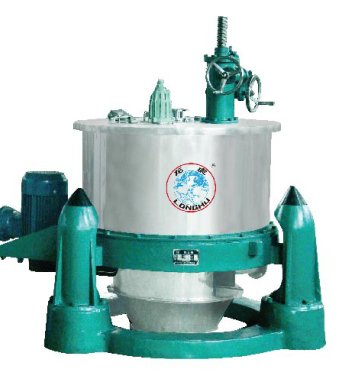 SG系列离心机是三足式手动刮刀下部卸料间歇操作的过滤设备,待分离的物料经进料管进入高速旋转的离心机转鼓内,在离心机力场的作用下,物料通过滤布(滤网)实现过滤,液相经出液管排出,固相则截留在转鼓内,待转鼓内滤饼达到机器规定的装料量时,停止装料,对滤饼进行洗涤,同时将洗涤液滤出,达到分离要求后,离心机低速运转,操作手动刮刀装置,通过先径向刮料,再轴向刮料,将转鼓中的滤饼刮下,刮刀装置复位,完成一次工作循环。