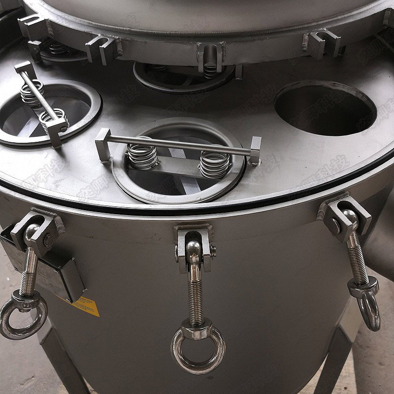 2、独特的机械旋转开盖,易操作、高经济性每个滤袋有单独的锁紧装置确保滤器和滤袋间良好的密封作用,3点平衡紧锁滤袋,确保无侧漏;