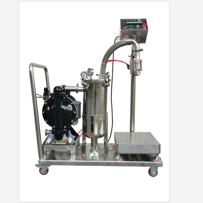 移动式过滤器,也叫小推车式过滤器。此种过滤器系统可由袋式过滤器、滤芯过滤器、或其它过滤器、泵、小推车、管件及阀门等部件有机的整合在一起的过滤系统。所有元件安装于手推车上,拥有紧凑的结构。小推车本体采用201/304材质或者316材质,抗腐蚀能力强。结构简单,轻便灵活,易于工人操作。可随意移动至生产线上进行工作。泵可选用隔膜泵、离心泵、齿轮泵。