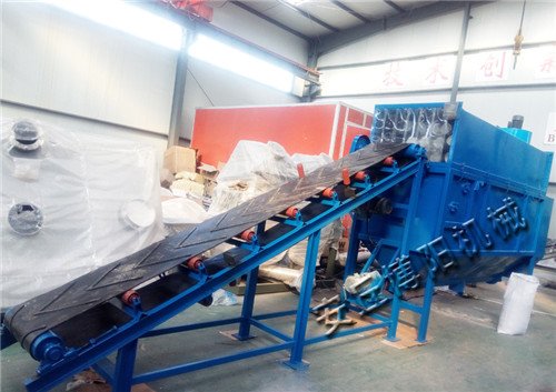 硅微粉自动拆袋机是通过皮带上料机将物料传送到滑板上并依靠重力沿滑板下滑,在下滑过程中由快速转动的刀片将包装袋割开,物料滑入滚筒筛进行筛分。在由管链输送机等其他输送设备输出,破损的包装袋、杂质、结块物料被滚筒筛带出机体。