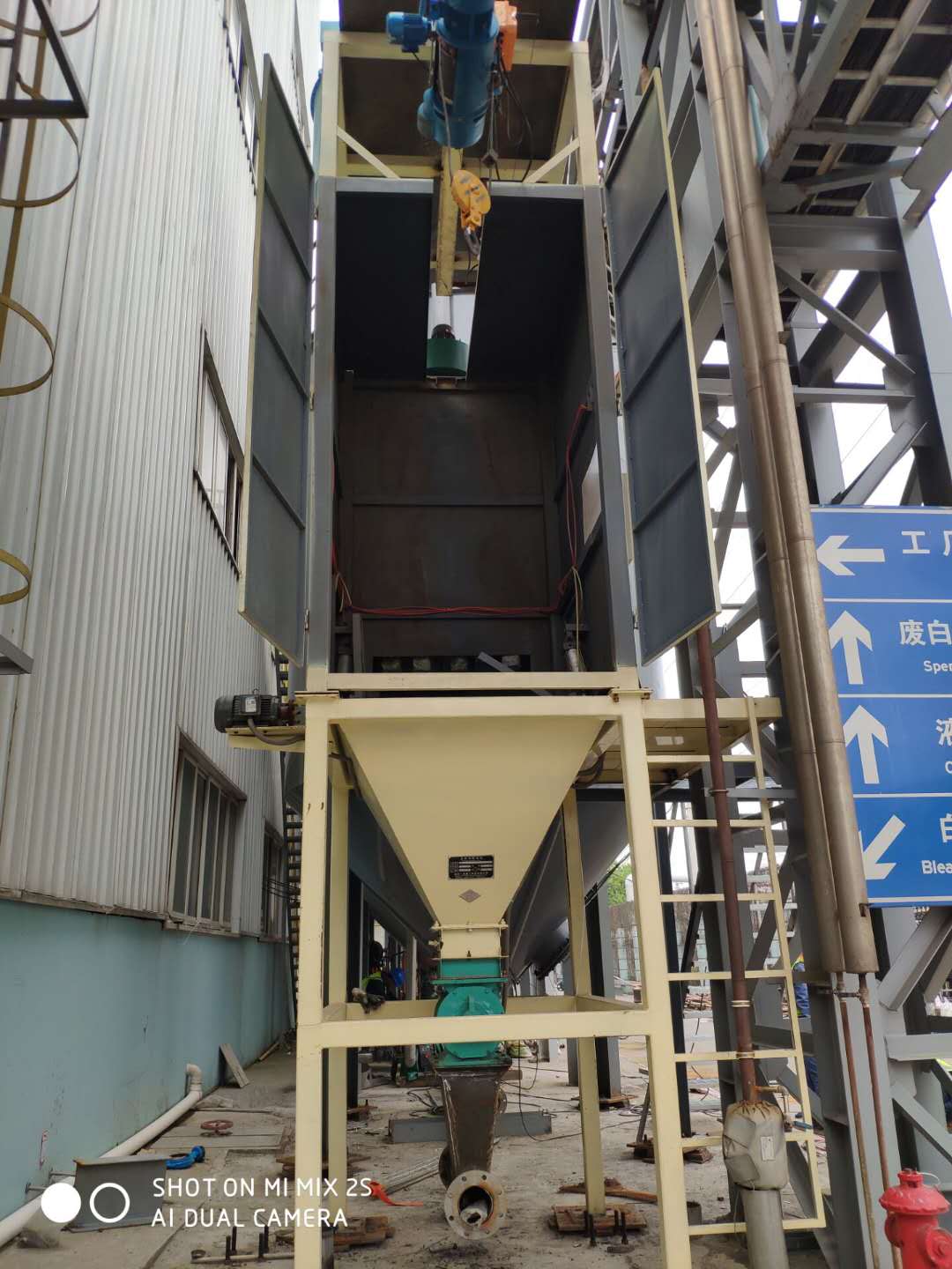 4. 卸料完毕,吊袋机构升起,人工操作电动葫芦起升,吊出空袋;