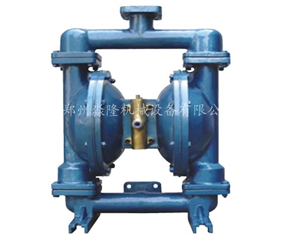 气动隔膜泵之动作原理参考下图。图中左右两边各有一隔膜室,每一个隔膜室各有一软质之隔膜在中间将隔膜室中的压送室及空气驱动部(空气室)隔开并封闭起来。当压缩空气进入隔膜室中的空气室时,隔膜即受压往外推出,形成压送行程,在压送室的流体即受压经上止回阀、汇流管,而后由泵出口流出。由于两片隔膜中间已隔膜连杆相连,当一边的隔膜往外推出向外压送流体的同时,另一边隔膜即向内收缩,进行相反的吸液行程,使相对的空间充满液体。当隔膜到达行程终点之后,泵内之空气分配阀将自动切换位置,使空气得以切换进入另一隔膜室(空气室),反向重复上述动作;两边的隔膜室将因此呈现交替的压送及吸液动作。