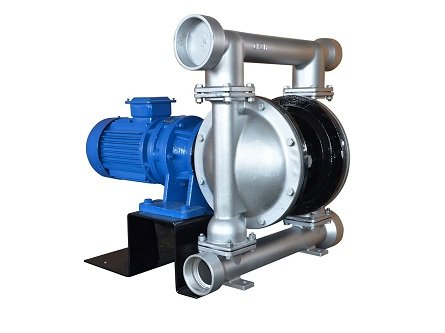 电机通过减速箱带动左右两端柱塞上面的隔膜一前一后往复运动。在左右两个泵腔内,装有上下四个单向球阀,隔膜的运动,造成工程腔内的容积的改变,迫使四个单向球阀交替地开启和关闭,从而将液体不断地吸入和排出。