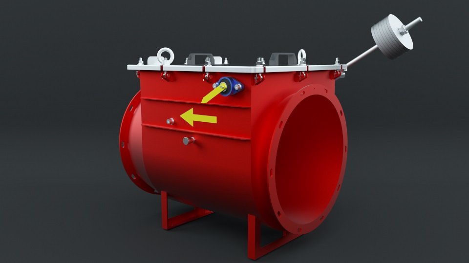 翻板式隔爆阀安装在含尘管道上,其翻板的状态由除尘设备下游的风机控制,当风机开启时翻板阀会缓慢打开,当风机工作一段时间后翻板阀可以张开一定的角度能够使介质进行传输,风机停止工作时翻板在重力作用下关闭与法兰的平面相切合,形成机械密封。爆炸发生时,翻板受冲击波和压力作用迅速关闭,使其在极短的时间内切断管道中爆炸产生的火焰和压力的传播,将爆炸隔离在一定的区域内,降低爆炸对生命财产的危害。经过专业测试,可以得出每个厂家各个型号隔爆阀的耐爆性——**泄爆压力pred,max、 *小安装距离、和**安装距离,这些*要的参数是选择可靠的隔爆阀的重要依据。