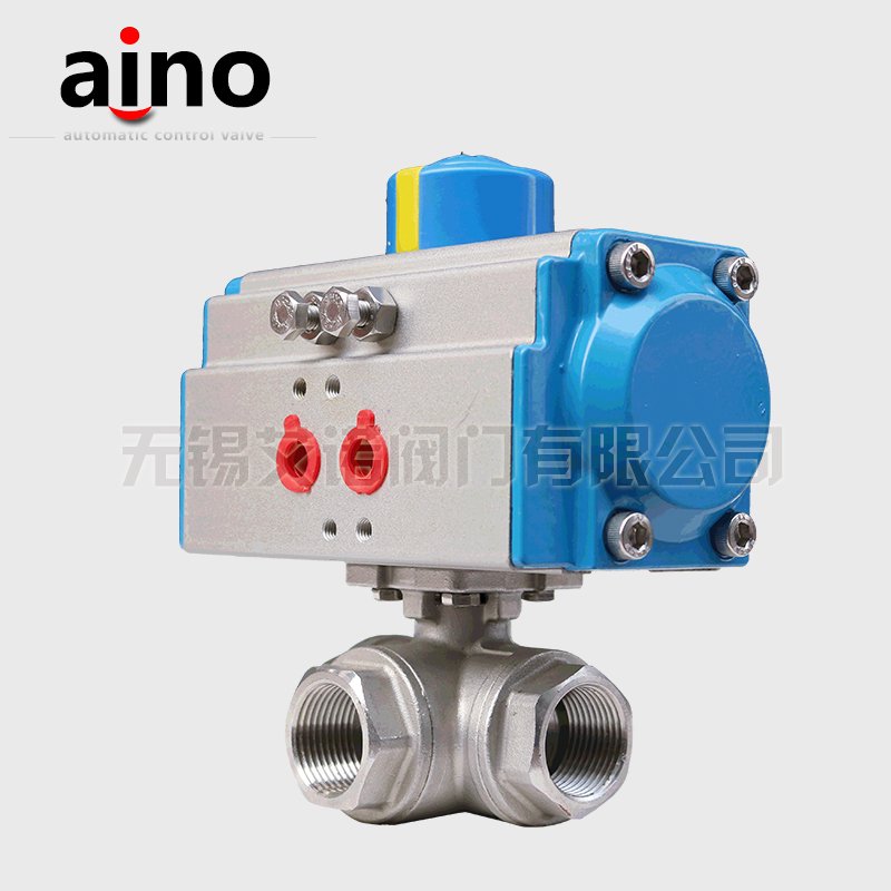 AQ614/5F气动丝口三通球阀可为L形和T形,气动L形三通球阀(AQ614F)用于介质流向的切换,能使相互垂直的两个通道连接;气动T形三通球阀(AQ615F)用于介质分流、合流及流向切换,T形三通可以使三个通道相互连通或使其中的两个通道连通。气动丝口三通球阀一般采用两阀座结构,亦可根据用户要求采用四阀座结构,广泛适用于供水、石化、冶金、矿山、轻纺、能源、造纸、食品、钢铁等管路系统中对介质流向进行切换以及对介质的分流或混合流体。