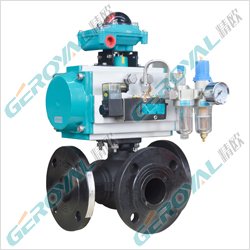 Q644/45F气动三通球阀是一种三通道的回转型球阀, 用于介质分流、合流及流向切换,任何一个管道都可以作为入口或出口。气动三通球阀分有气动三通L型球阀和气动三通T型球阀两种,可以满足不同的生产工艺要求。气动三通L型球阀是对三条管道中的两条管道进行切断,气动三通T型球阀实现把三条连通管道进行合流与分流。气动三通调节球阀与电气阀门定位器配套,输入4~20mADC信号及0.4~0.7MPa气源即可控制运转,实现对压力、流量、温度、液位等参数的调节。气动三通换向球阀配行程限位开关、电磁阀、减压阀及0.4-0.7MPa气源可实现开关操作,并送出二对无源触点信号指示阀门的开关。气动三通球阀广泛应用于化工,石油,轻纺,电力,食品制药,制冷,航空,航天,造纸等工业领域。