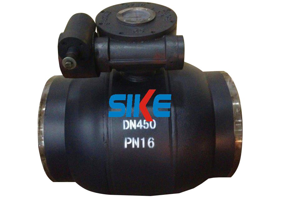 一体式全焊接球阀DN450、不会有外部泄露等现象. 由于阀座是有碳纤维增强特氟隆密封及蝶形簧构成的,所以对压力和温度的变化适应能力强,在标注压力和温度范围内部会产生任何泄露。球体的加工过程有先进的的计算机检测仪跟踪检测,所以球体的加工精确高。由于阀体材料跟管道材质一样,不会出现应力不均,也不会由于地震及车辆经过地面时而产生变形,管道耐老化。密封圈本体采用含量20%carbon(碳素)的RPTFE材质,保障完全无泄漏。直埋式焊接球阀可以直接埋与地下,不用建高大型阀门井,只需在地面上设置小型浅井,大大节省施工费用及工程时间。可根据施工及设计要求,调节阀体的长短和阀杆的高度。球体的加工精度非常精密,操作轻便,无不良干涉。采用高级的原材料,能保证PN25以上的压力。与同类行业的同种规格产品相比,阀体小,而且外形美观。在保证阀门正常操作、使用情况下,使用寿命在15年以上。