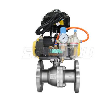 气动法兰球阀适用于水、油品、天然气、弱腐蚀粘稠液体等介质中,适用温度:≦180℃,适用压力:1.0-6.4Mpa。广泛应用于化工、石油、轻纺、电力、食品制药、造纸行业等自动化流体控制系统中。小口径球阀采用GT型系列执行器:铝合金壳体,外观精美,质量轻、耐腐蚀等。
