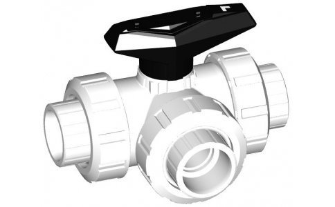 PVDF标准型三通球阀/水平型/ L型孔/带焊接承插端 公制
