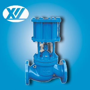 ZMC或ZSC型气垫二位切断阀,由气垫薄膜(活塞)执行机构和切断阀两部份组成,当无信号输入时,执行机构由于弹簧预紧力,使阀芯关阀座,当输入350KPa空气信号压力时,托盘(活塞)推动阀杆向下动作使阀芯关闭下阀座,这样管道内的流动介质便可切换或切断.
